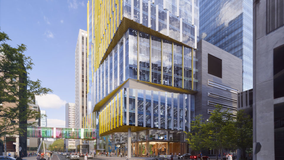 Ce projet comprenait la démolition du bâtiment Elizabeth McMaster existant de 8 étages et la conception d’un nouveau centre de soutien aux patients de 22 étages. C’est au final un nouvel immeuble de 452 000 pieds carrés incluant des espaces de bureaux (classe A), deux niveaux sous-terrains dédiés aux programmes, des espaces cliniques, un centre de conférence, un nouveau pont piétonnier reliant le Peter Gilgan Centre for Research and Learning et l’atrium principal de l’hôpital.